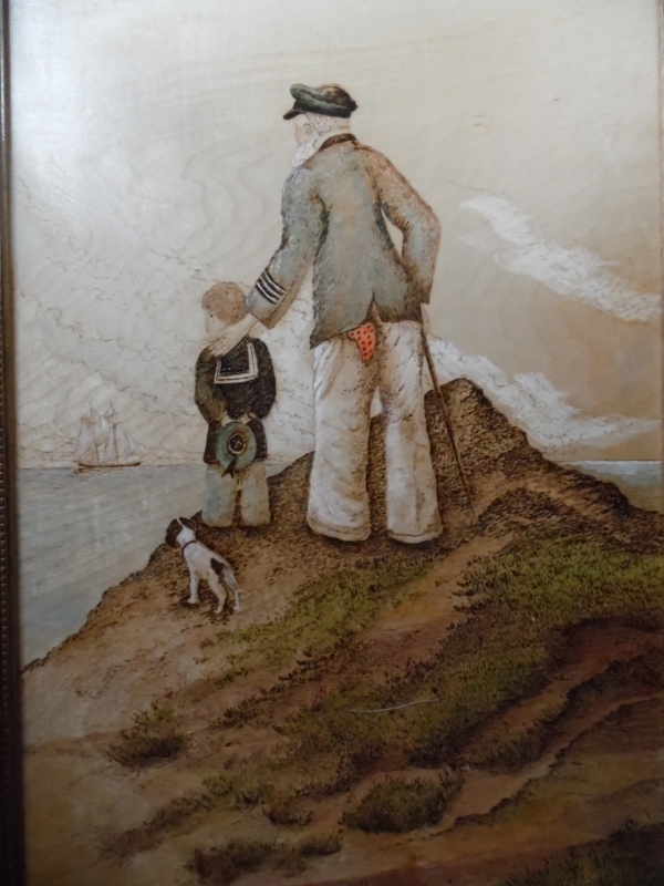 Today, my Burnt Offerings still utilize heat and wood to create unique and “one of a kind” artwork. The use of Birch wood with its tight grain, allows for intricate and extensive detail and texture. The marriage of the two mediums, pyrography and acrylic wash, greatly enhance the creation allowing you to touch the scales of a bass striking a plug, feel the plumage of a preening bird or touch the rocks beneath a wave washed lighthouse. Unlike many woodburning pieces, my work tends to be of a larger size, with most pieces being 12 x 24 to 18 x 24 with larger pieces available making them ideal for main wall hangings.”