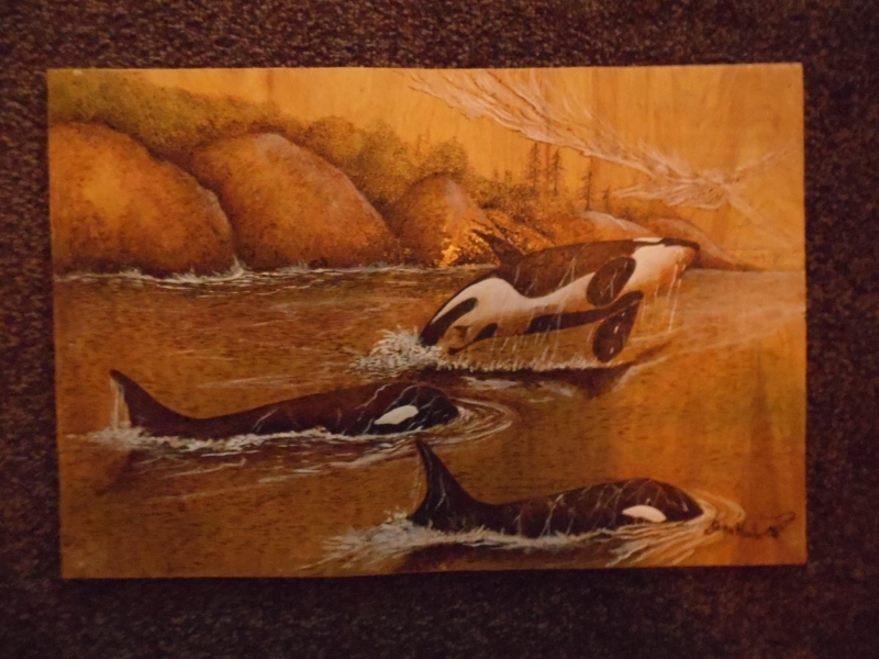 Today, my Burnt Offerings still utilize heat and wood to create unique and “one of a kind” artwork. The use of Birch wood with its tight grain, allows for intricate and extensive detail and texture. The marriage of the two mediums, pyrography and acrylic wash, greatly enhance the creation allowing you to touch the scales of a bass striking a plug, feel the plumage of a preening bird or touch the rocks beneath a wave washed lighthouse. Unlike many woodburning pieces, my work tends to be of a larger size, with most pieces being 12 x 24 to 18 x 24 with larger pieces available making them ideal for main wall hangings.”