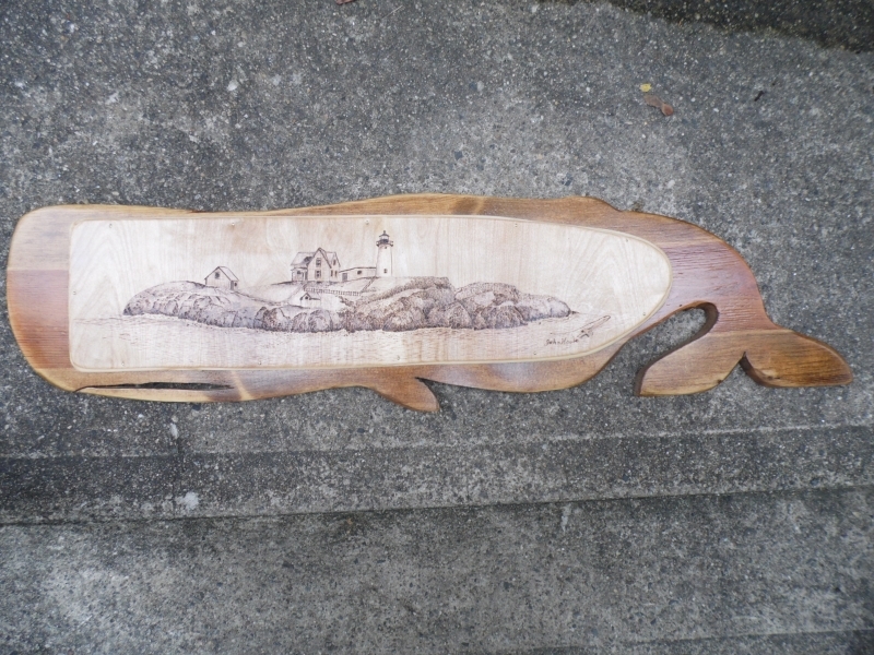 Today, my Burnt Offerings still utilize heat and wood to create unique and “one of a kind” artwork. The use of Birch wood with its tight grain, allows for intricate and extensive detail and texture. The marriage of the two mediums, pyrography and acrylic wash, greatly enhance the creation allowing you to touch the scales of a bass striking a plug, feel the plumage of a preening bird or touch the rocks beneath a wave washed lighthouse. Unlike many woodburning pieces, my work tends to be of a larger size, with most pieces being 12 x 24 to 18 x 24 with larger pieces available making them ideal for main wall hangings.”